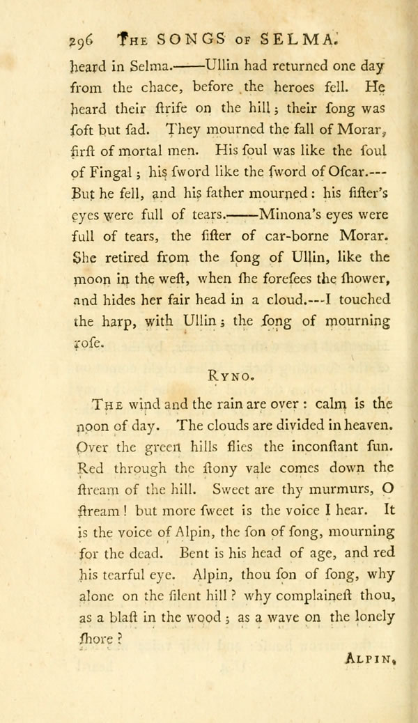 gave the song of Alpin.—The voice of Alpin was pleasant: the soul of Ryno was a